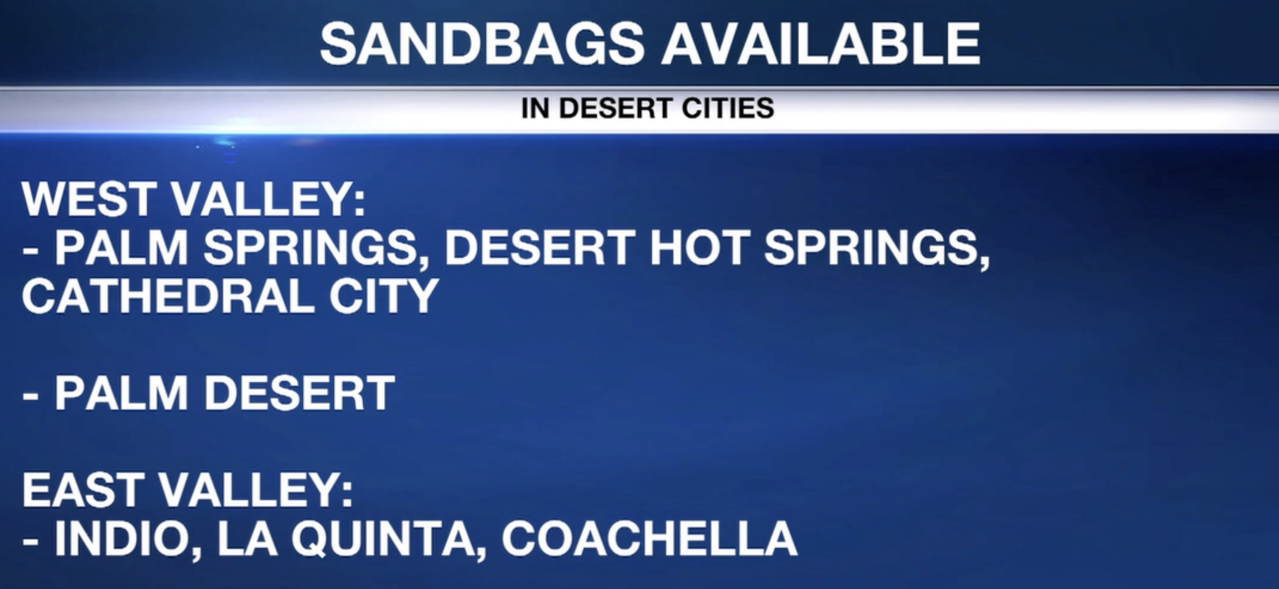 VALLE DE COACHELLA (CA) — Con la llegada de lluvias a la región, ciudades locales están intensificando las medidas de preparación para ayudar a la comunidad a enfrentar posibles inundaciones y afectaciones por tormentas. Entre los recursos más utilizados se encuentran los sacos de arena gratuitos, los cuales ayudan a desviar el agua y proteger viviendas y negocios. Autoridades informaron que los residentes de las ciudades indicadas pueden obtenerlos en puntos designados dentro de sus comunidades.