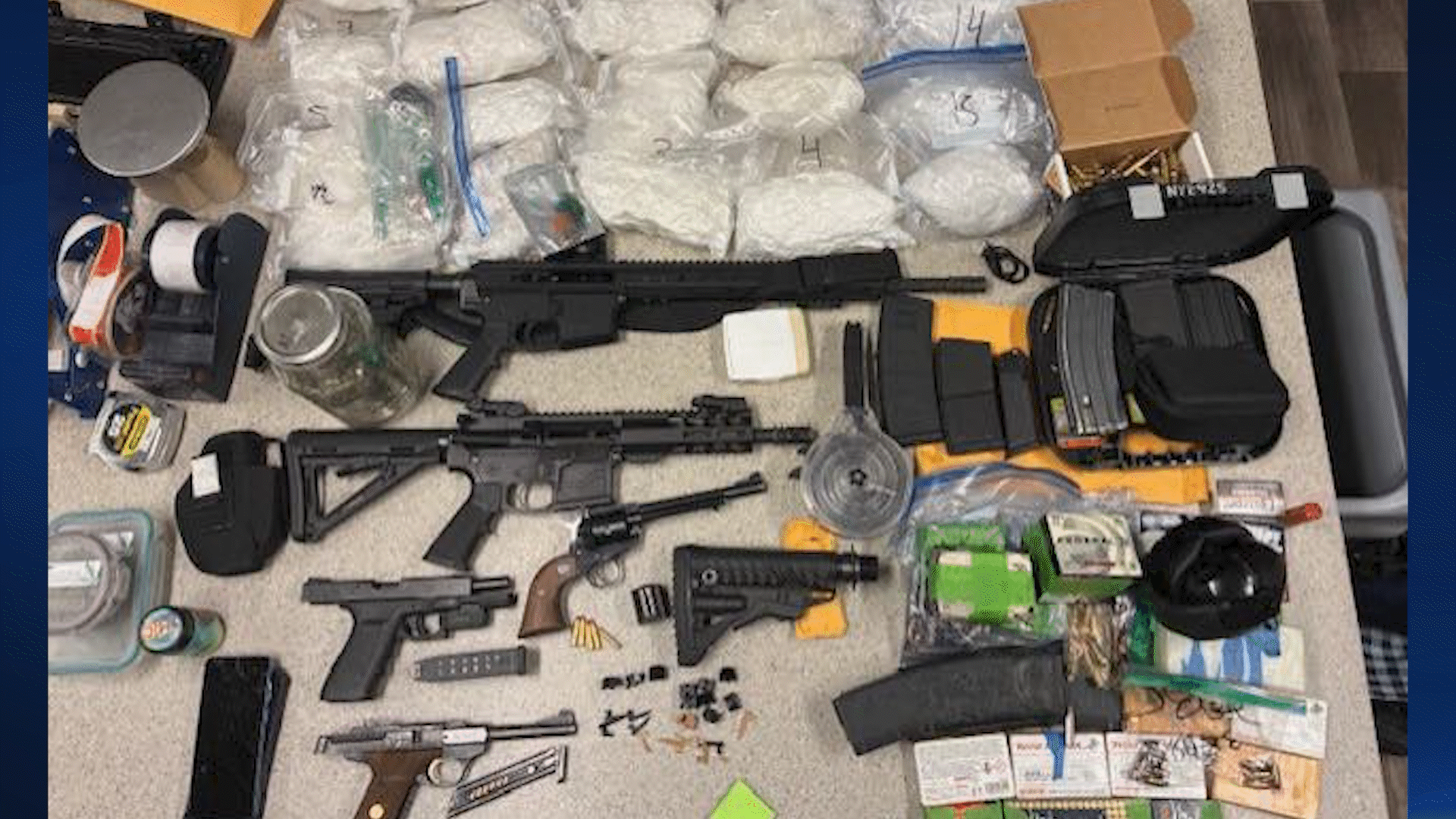 Durante el registro, las autoridades incautaron “casi 20 libras de metanfetamina, aproximadamente un cuarto de libra de heroína, ocho libras de marihuana y una pequeña cantidad de pastillas de Xanax. Los investigadores también encontraron dos rifles de asalto, tres pistolas, una gran cantidad de municiones, numerosos cargadores de alta capacidad y varios dispositivos impresos en 3D diseñados para convertir armas tipo Glock en armas automáticas”, dijo Plata.