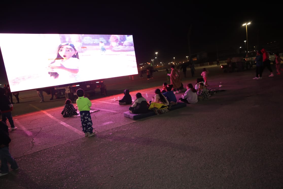 La noche del martes, el alcalde Cruz Pérez Cuéllar visitó a las familias que esperaban la entrega de los obsequios. Para hacer la espera más amena, se instaló una pantalla donde los niños pudieron disfrutar de películas, y también se ofrecieron tamales y café a los asistentes.